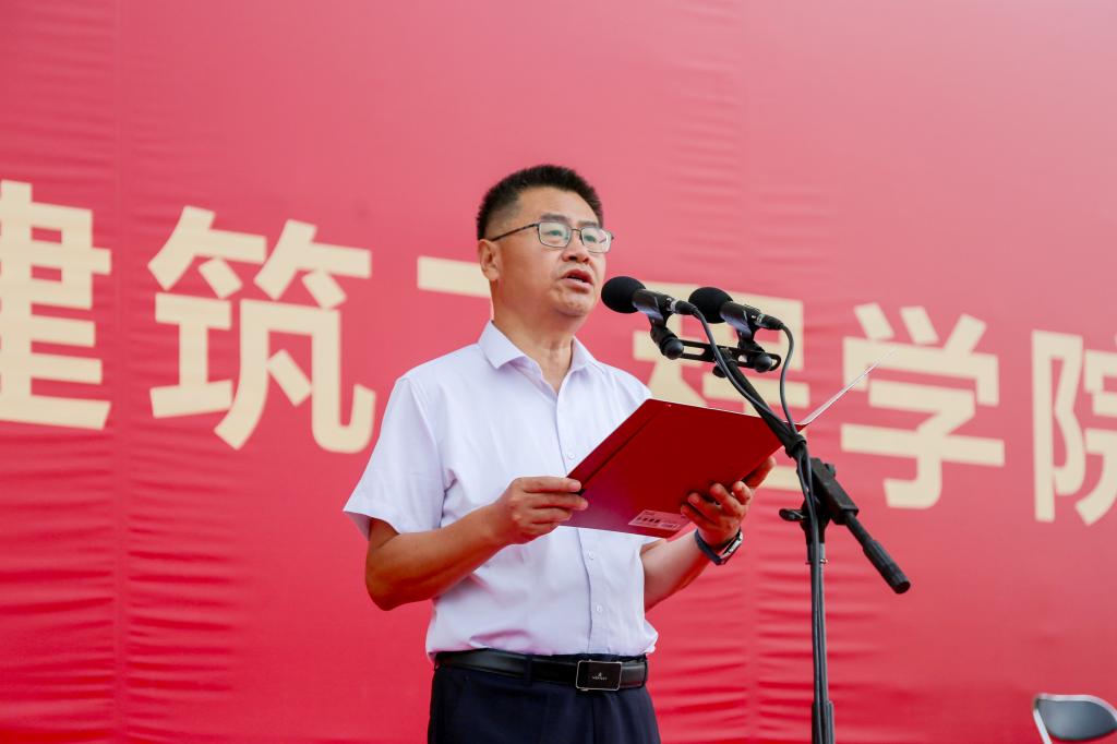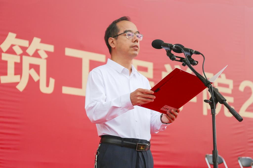 校长王建民致辞,他对同学们提出三点期望:一是以信仰为基,筑牢青春之魂,做心怀家国的时代新人;二是以实干为要,锻造专业之能,做扎根大地的实学英才;三是以创新为翼,勇立时代之潮,做引领未来的开拓先锋。