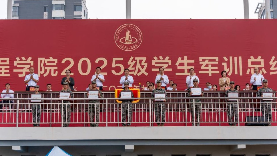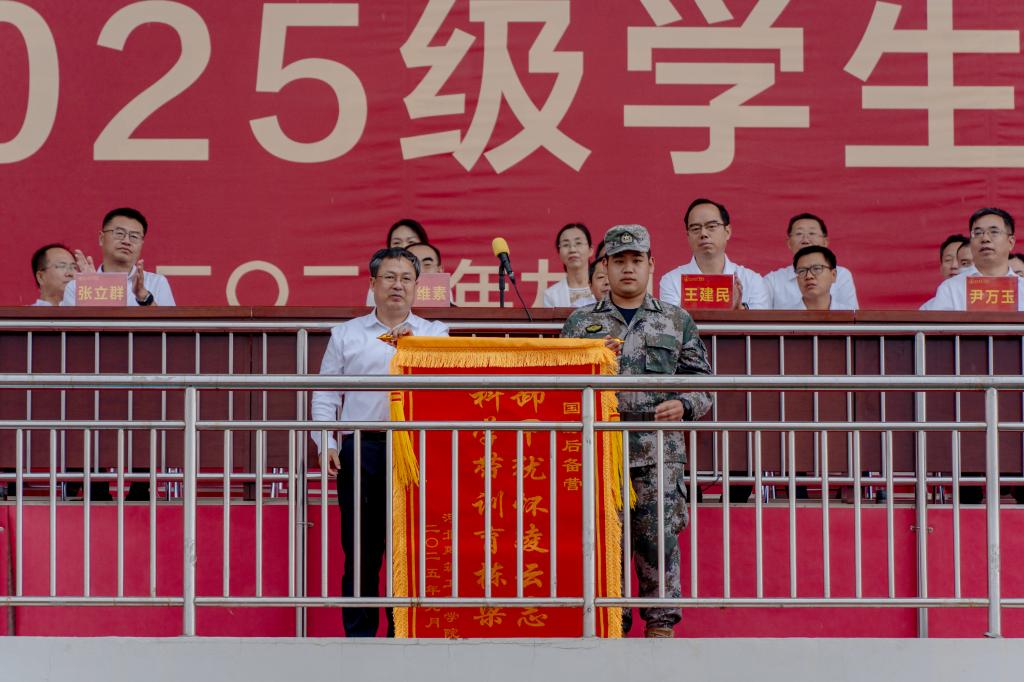 校党委副书记张立群宣读了《2025级学生军训先进集体、先进个人的表彰决定》,与会领导为军训“先进营”“先进连”“优秀教官”“优秀教师”和“优秀学生”代表颁奖。