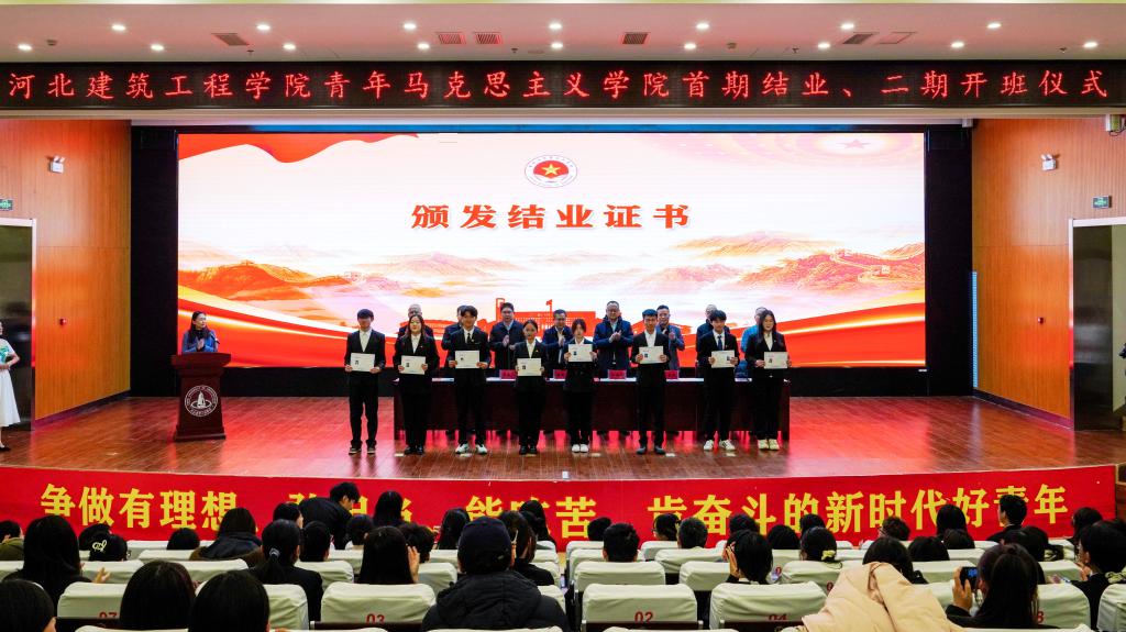 11月19日下午,学校青年马克思主义学院首期结业暨二期开班仪式在新能源交流中心顺利举行。校党委书记、青年马克思主义学院院长翁维素,党委常委、副校长赵海军,共青团张家口市委书记戎海广,以及组织部、宣传部、学工部、校团委、马克思主义学院等相关部门负责人出席仪式。各二级院系副书记、团委书记、全体青马学员及学生代表共同参加。仪式由校团委副书记刘蓓蓓主持。