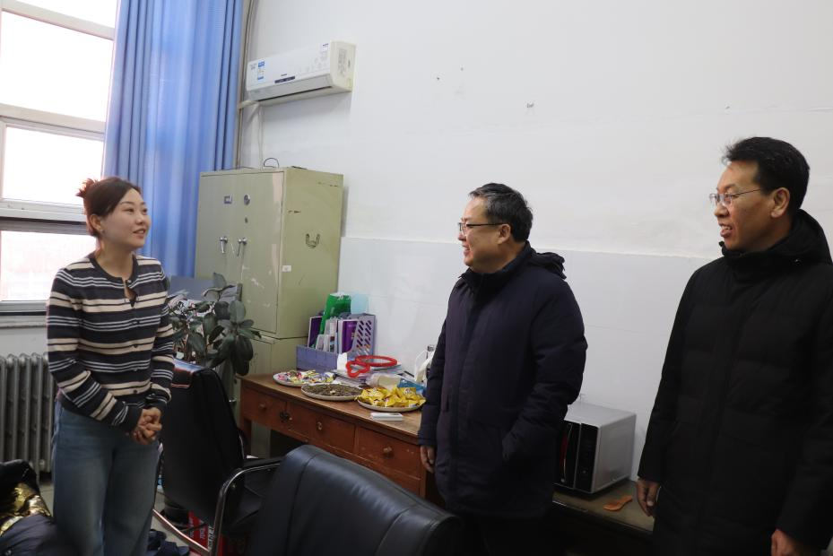 大年初一,校党委书记翁维素慰问春节期间依然坚守岗位的工作人员,向大家致以新春祝福。副校长贾玉贵、党(校)办、后勤管理处、安全工作处等相关职能部门同志陪同。