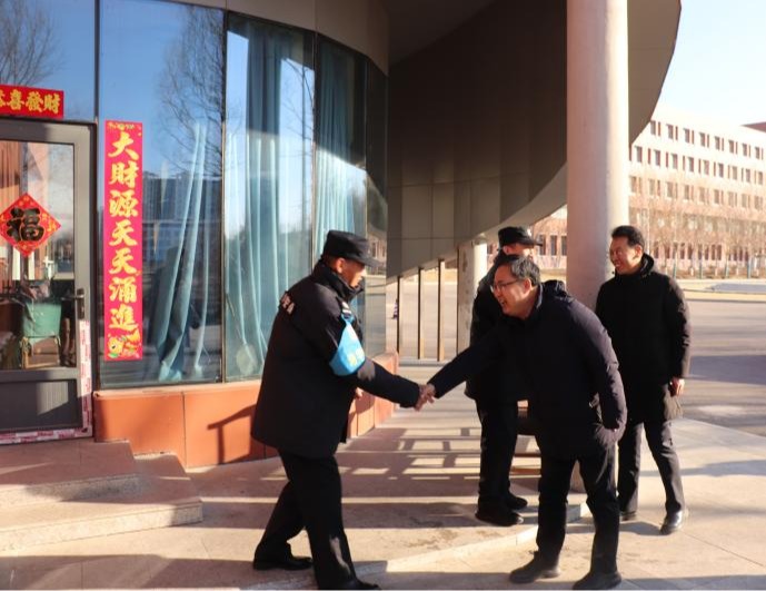 翁维素先后走访慰问了在门卫安保岗位、监控室、学校值班室等值班的人员。每到一处,与值班人员亲切交谈,详细询问春节期间值班值守、校园安全、后勤保障等工作开展情况,对大家放弃节日休息、坚守工作一线的奉献精神表示高度肯定和衷心感谢。他指出,春节期间校园安全稳定事关全局,正是全体一线人员恪尽职守、日夜坚守,才为学校平安稳定和正常运转筑牢了坚实屏障。