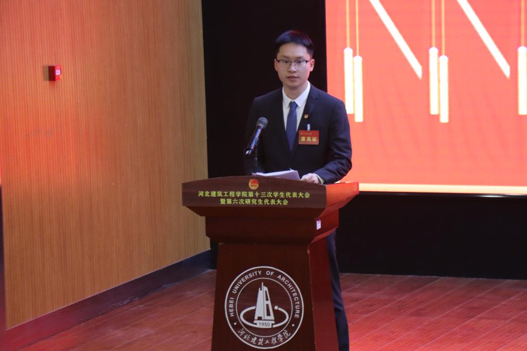 大会审议通过了《河北建筑工程学院学生会章程(草案)》《河北建筑工程学院研究生会章程(草案)》和《河北建筑工程学院第十三次学生代表大会暨第六次研究生代表大会提案工作报告(草案)》,选举产生了新一届学生会、研究生会委员会和主席团,圆满完成了各项议程。