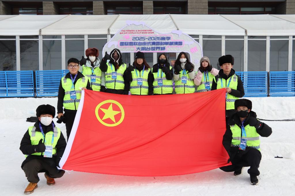 近日,2025-2026赛季国际雪联单板及自由式滑雪大跳台世界杯崇礼云顶站赛事在张家口崇礼云顶滑雪公园顺利落幕。我校9名青年志愿者积极参与赛事服务,他们均来自入选2025年北京市“大学生讲大先生”科学家精神宣讲团的“张垣知行宣讲团”,以专业的服务和饱满的热情,为本届世界杯贡献了青春力量。