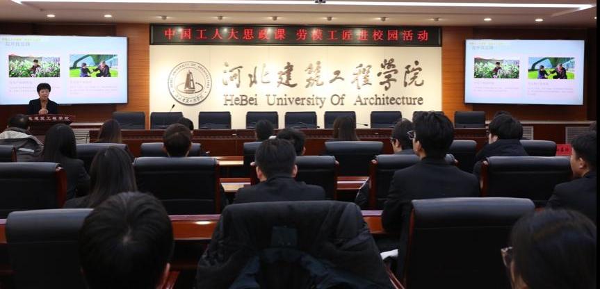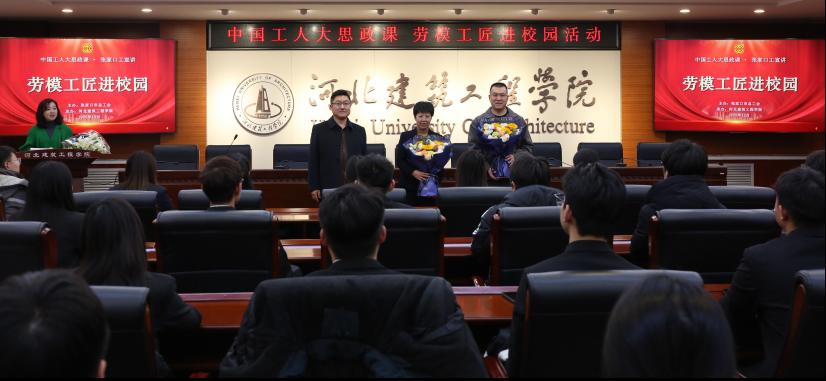 为进一步弘扬劳模精神、劳动精神、工匠精神,充分发挥劳模工匠的示范引领和价值导向作用,培养学生的劳动观念和创新精神,12月23日,由张家口市总工会与张家口市广播电视台联合主办、校工会与校团委联合承办的“铸匠心·育栋梁”2025张家口市劳模工匠进校园示范活动在崇德楼A406会议室举办。