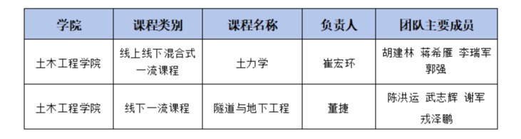 近日,教育部公布第三批国家级一流本科课程认定结果,我校共有两门课程成功入选。其中,崔宏环教授主持的《土力学》获批线上线下混合式一流课程,董捷教授主持的《隧道与地下工程》获批线下一流课程。截至目前,我校已累计获批国家级一流课程3门。