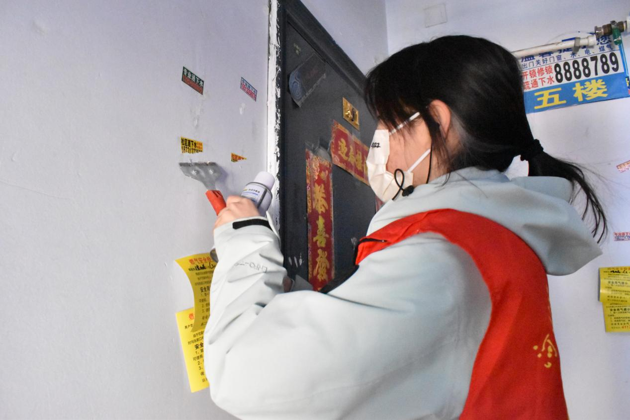 活动现场,志愿者们分工明确、默契协作,带着铲刀、垃圾袋等清洁工具,迅速投入到环境卫生清理工作中。他们秉持“细致清理、不留死角、不损墙面”的原则,对社区楼道、墙面、宣传栏等公共区域开展“拉网式”清理,针对粘贴牢固的顽固小广告,先用工具浸润软化,再小心翼翼逐一铲除,不放过任何一处卫生死角。经过大家的辛勤付出,共清除11栋楼49个单元各类违规张贴、喷涂小广告,有效整治了影响社区环境的“顽疾”,让社区面貌焕然一新。