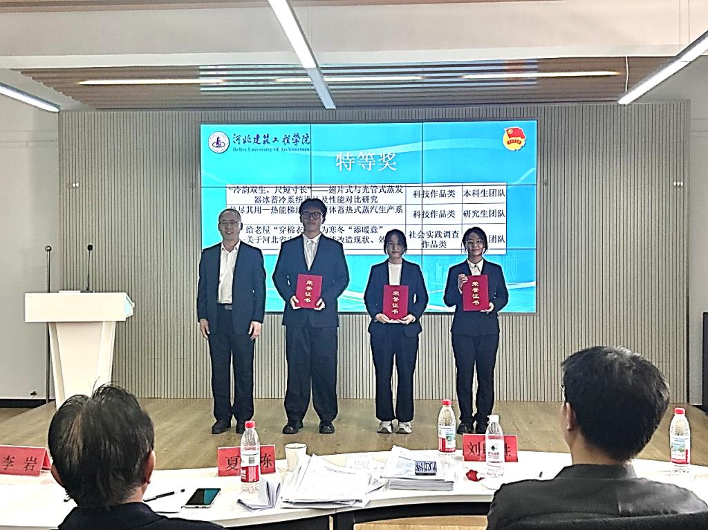3月21日上午,决赛答辩在可再生能源中心二楼培训教室举行。各参赛队伍通过PPT汇报、现场答辩及实物展示等形式,全面展示了各项目的科研创新水平、实地调研成果与应用前景。评审专家本着客观公正的原则,从创新性、实用性、科学性及主题契合度等维度进行综合评审,并针对各项目的优化方向提出了建设性指导意见。经过三个小时的激烈角逐,评审组最终评定出特等奖3项、一等奖5项、二等奖7项。